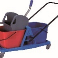 - 2 baldes cinzentos de 18 litros, com escorredor e suporte metálico